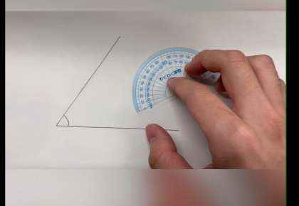 分度器の使い方を実さいに動画にしました。これを見ていろいろな角度をはかってみよう!ポイントは頂点と辺を合わせることですよ!