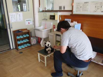 「しょうどくをするよ。これでよし。」