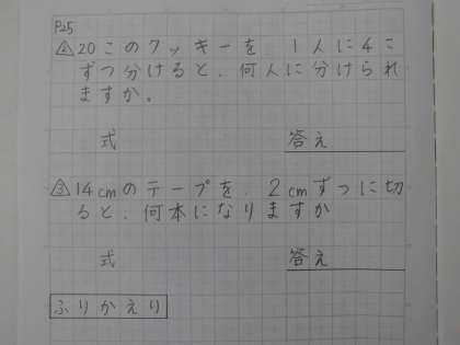 このような 1人にいくつかずつ分けるときも「わりざん」をつかいます。