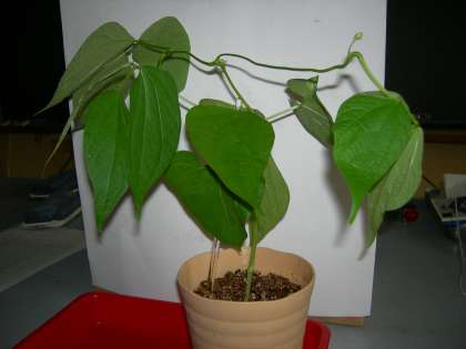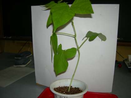 子葉がしおれて養分がなくなったインゲン豆の成長を,