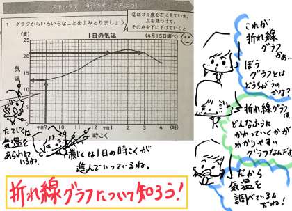 4年生で初めて出てくる折れ線グラフ。どんなところがぼうグラフとちがうのかな。