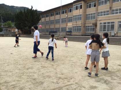 その後みんなで外に出てドッジボールをしました。学校の広いグラウンドで運動するのは久しぶりでしたね。みんな汗を流しながらボールを投げていました。