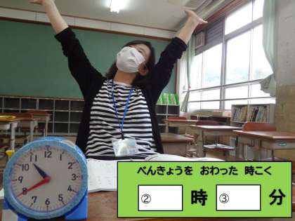 先生たちが 学しゅうした 時こくと 時間を こたえましょう!!