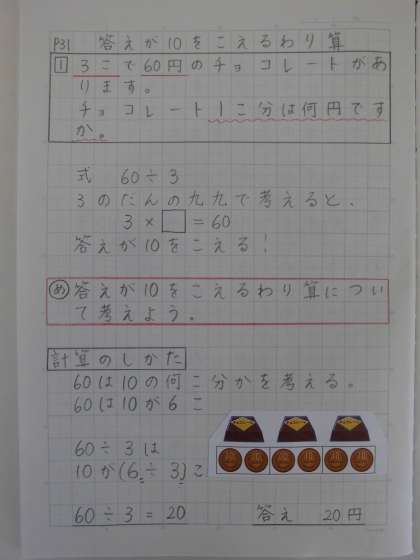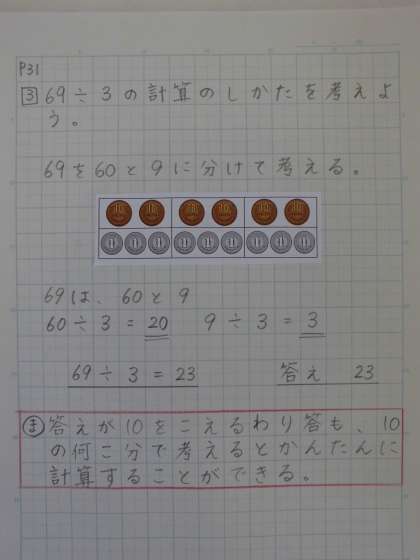 さぁ、今回はP31の答えが10をこえるわり算です。