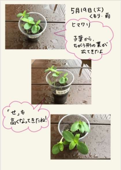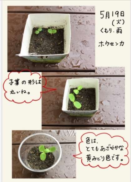 子葉からちがう形の葉も出てきました。