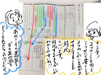 2つ以上のもののちがいを分かりやすく説明するために…「対比」という表げんの方ほうがあります。でも難しそう…ではありません!先生たちといっしょに「思いやりのデザイン」を読んで「対比マスター」になろう!!
