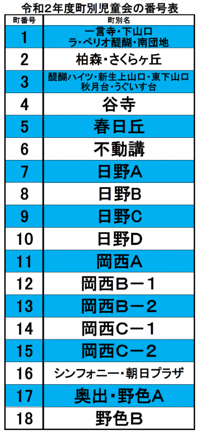 「町別児童会の番号表」は,右側の「配布文書」からもご覧いただけます。