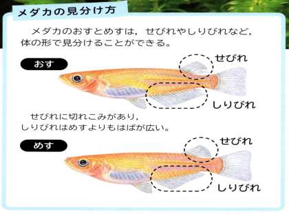 オスとメスの見分ける方法を見つけました。学校再開後にぜひ,オス・メスが何匹ずついるのか数えてみてください。