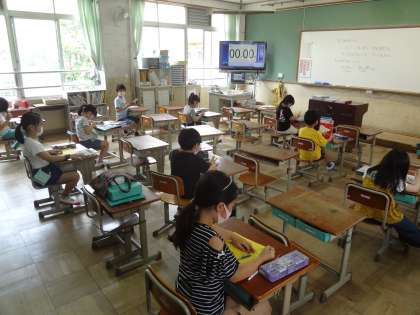 今日から,AグループBグループに分かれた分散登校が始まりました。今日はAグループの子どもたちが登校して,久々の学校生活を送りました。約3か月ぶりということもあって,「ちょっとつかれた…。」という子もいました。