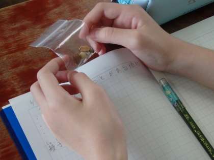 しかし,植物の種子の観察をし,話を聞いていくうち子ども達も少しずつ慣れてきたようで,発表の声がたくさん聞こえるようになってきました。
