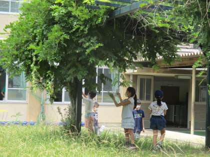 3年生が小さな自分になってお気に入りの場所を探していました。