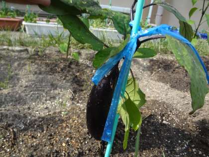 2年生 生活 ナスが実っています