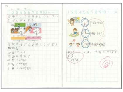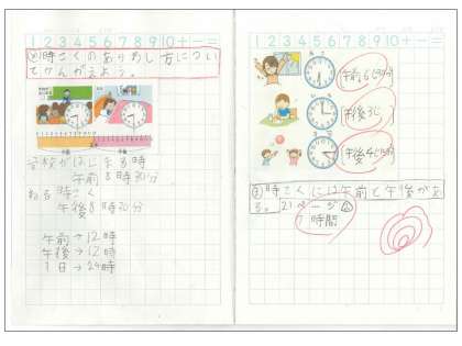 午前と午後を使って,時刻を表す方法について勉強しました。