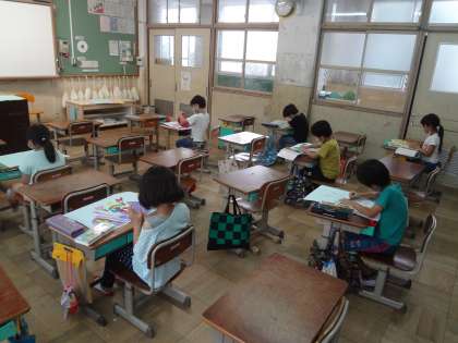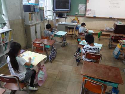 Bグループの子どもたちが図工の学習に取り組みました。