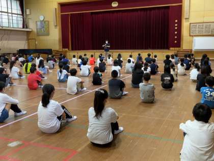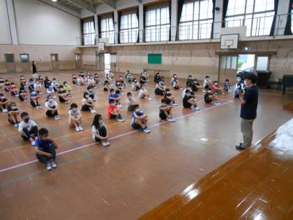 先生から学年目標と今後の朝ランに向けての話,ルールについて話をしました。