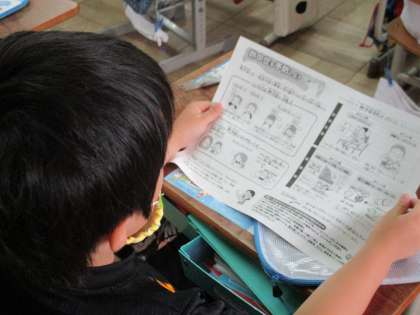 朝の会の後,先生から配ってもらった配布プリントを見ながら,お話を聞きました。保健だよりには,健康に過ごすために大事なことが書かれているので,いっしょうけんめいお話を聞いていました。