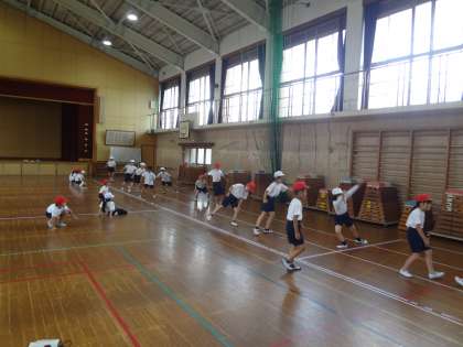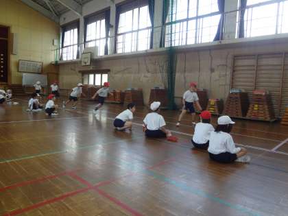 今回は反復横跳びをしました。素早い動きでがんばりました。
