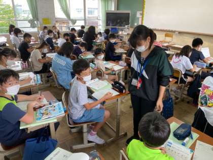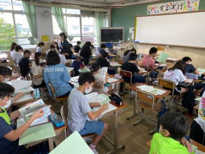 自己紹介に向けての準備を行いました。今日のミッションは教科書をすみずみまで見て,英語を調べて,書いていきました。たくさん英語にふれましょう♪