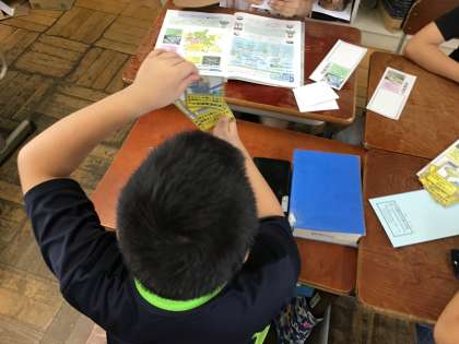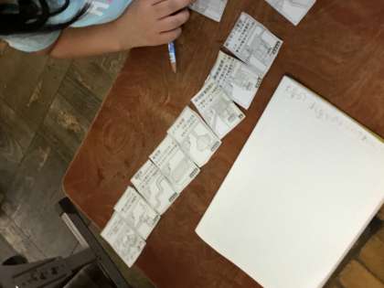 琵琶湖疏水の水が浄水場でどのような過程を経て,きれいになっていくのかを考えるために水とくらしカードゲームを作成しました。子どもたちはカードを並べ替えて「どんな順になっているのかな。」「こっちが先かな。」と考えながら楽しく並べ替えていました。最後には水とくらしカードを使ってゲームをしました。「またしたい!」「浄水場の仕組みをもう覚えたよ!」とみんな楽しみながらも学習に取り組んでいました。