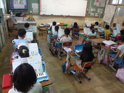 鍵盤ハーモニカを使った学習をスタートすることができました。「かっこう」を演奏しています。指づかいや音の鳴らし方,3拍子のリズムなどに気を付けて演奏しています。