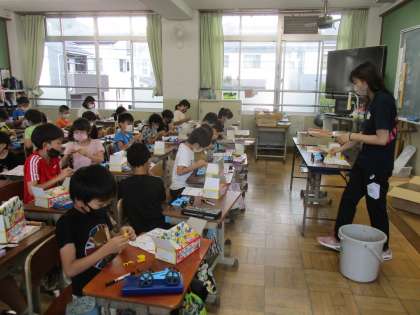 先生の話を聞いたり,友達と教え合ったりしながら,がんばって細かい作業をしていました。実験が楽しみですね。