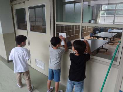 学校の中にあるものの中から,おうちの人に知らせたいものを選んで,メモを取りに行きました。どこにあるか,どんな特徴があるかなどをじっくり見て観察しました。