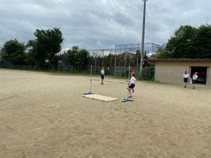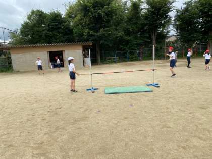 雨が続く中,ようやく外で体育ができました。「走り高跳び」を行いました。それぞれの高さで挑戦していく姿勢が見られました。外で一生懸命運動するっていいですよね。