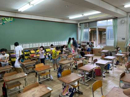 1年生の教室に数名ですが,掃除のお手伝いに行き始めました。1年生の初めての掃除を一生懸命教える6年生の姿がかっこよかったです。
