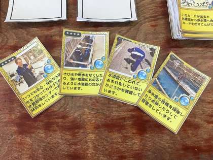 浄水場カードゲームに新カードが登場しました。これらのカードはなぜ必要なのでしょうか。みんなで,どんな役割があるのかを考えました。もちろん最後に少しだけ,新カードを入れてカードゲームをして楽しみました。