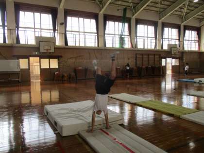 先生のお手本を見たり,ウレタンマットやゴムを使ったりしながら,練習をしていました。先生のお手本に歓声があがったり,できて喜ぶ子どもの笑顔があったりと,いい雰囲気で学習をしていました。