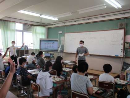 ALTの先生が英語で話す「家のお手伝い」を聞き取り,和訳していました。ALTの先生が英語で話したあと,たくさんの子が手を挙げて発表していました。