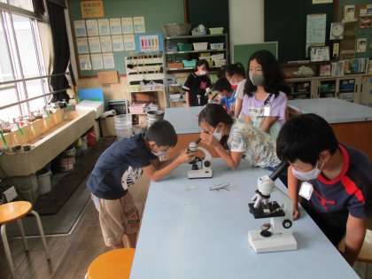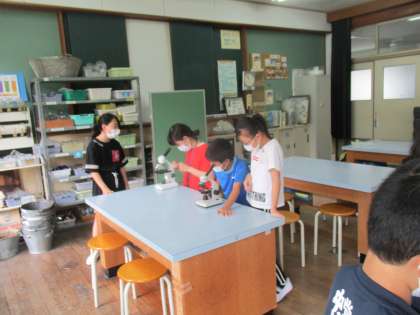 昨日の6年生と同じく,顕微鏡を使って学習をしていました。大きくしてみたいのは「花粉」。小さくてわかりにくいものを,拡大して観察していました。やっぱり理科室は便利ですね。