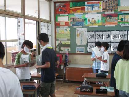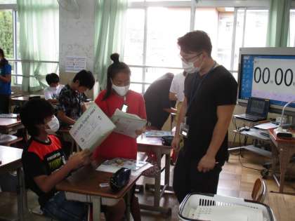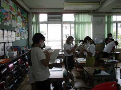 友だちやALTの先生といっしょに夏休みの思い出について,英語で会話をしていました。ALTの先生の思い出を聞いて笑いがおきるなど,楽しい雰囲気でした。