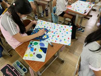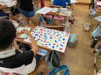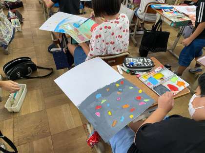 1組では,星屑クライミングでの作品を読んで,お話の絵に挑戦しています。それぞれ想像したことを絵にしました。本日は背景を描いていました。9月中には完成できそうですかね?