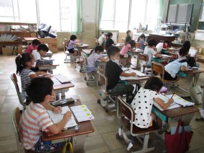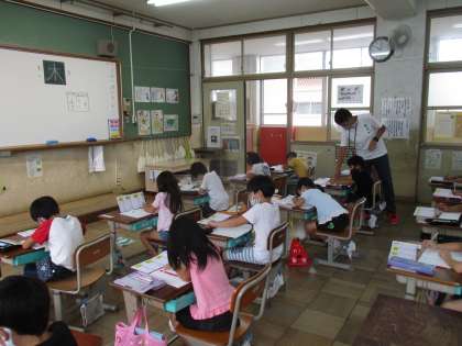 カタカナの学習も終わり,漢字の学習をがんばっています。担任の先生に書き方をていねいに教えてもらったり,練習しているときに声かけをしてもらったりして,一生懸命に書いていました。