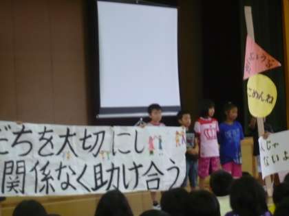 4年生は,「だいじょうぶ」「ごめんね」「一人じゃないよ」をあったか言葉として