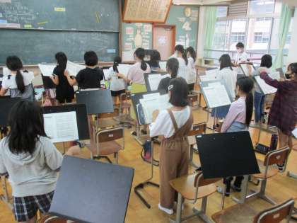 音楽部は,「勇気100%」を歌いました。マスクを付けながら歌いましたが,きれいな歌声が音楽室に響いていました。