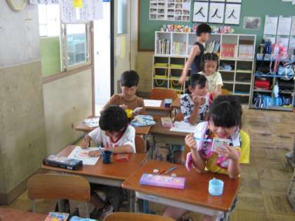 学活の時間に,はみがき指導をしました。カラーテスターを使って,学習を進めました。自分の普段のはみがきの仕方では,みがき残しがたくさんあったようです。今回の学習を自分の日常生活に生かしていきましょう。
