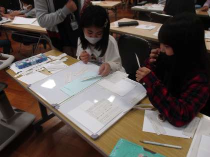 伝統工芸品を説明する文章を要約して,大事な言葉や文から,その工芸品の魅力を探るという学習でした。とても難しい課題ですが,一生懸命チャレンジする4年生のすばらしい姿を見せてもらいました。