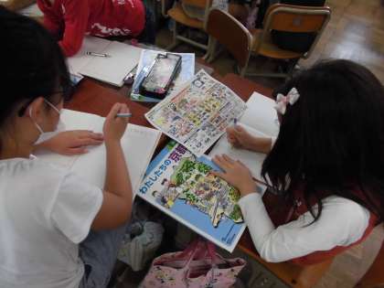 スーパーマーケットの広告を見て,売れるための工夫をさがしました。