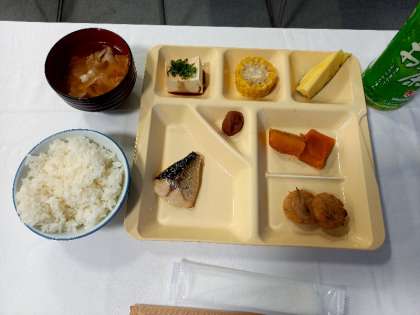 おはようございます。朝食の様子です。今朝は,朝食を始める前に全員の検温をしました。みんな平熱で,元気です。しっかり食べて2日目の活動に備えたいと思います。