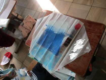 1年生は凧を作っています。富士山が描かれた縁起のいい凧もありました。できた凧は運動場であげました。今日の風では,走って凧揚げをするまでしかできませんでしたが,みんな,とっても楽しそうでした。