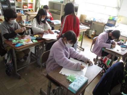 4年生が6年生のために,がんばって作業をしていました。何を作っているかは,できてからのお楽しみ。6年生,楽しみにしておいてくださいね。