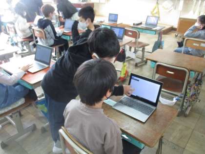 3年生がGIGA端末を使って学習をしていました。困っている友達に操作の仕方を教えるなど,頼もしい子どもが増えているように思いました。この調子で高め合ってほしいと思います。