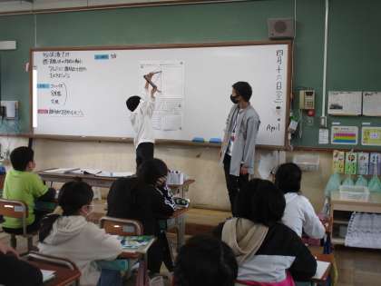 対称な図形について調べたり,図を描いたりする学習をしていました。コンパスや定規,6年生までに学習したことなどを使って,学習していました。