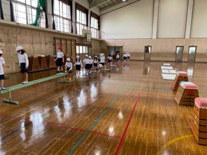 そのあと、体育館の器具を使って、サーキットを行いました。汗だくになって活動していました。