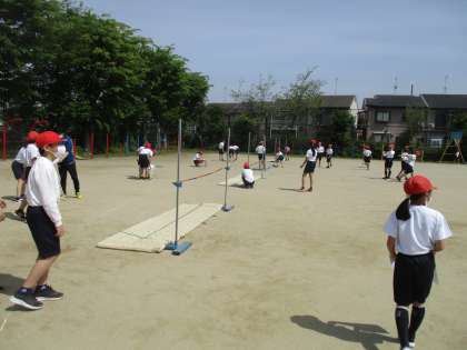 6年生は走り高跳びの学習をがんばっています。助走の仕方や踏み切り方などを工夫して記録に挑戦していました。記録や用具係などの分担もバッチリでスムーズに学習を進められていました。