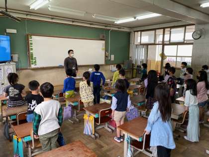 今年初めてのALTとの先生との外国語活動でした。先生の好きなものや得意なものを英語で聞いて質問に答えていきました。