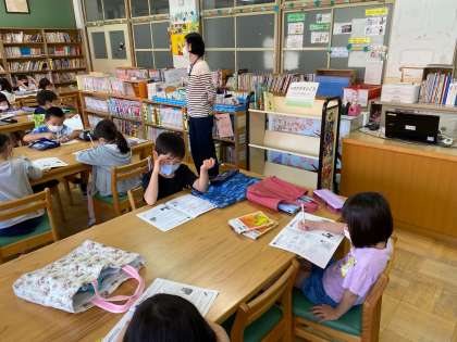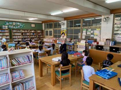 司書の先生に図書室の使い方について教えていただきました。読書ノートを活用して正しい本の扱い方も学習しました。たくさん本にふれていってほしいと思います。
