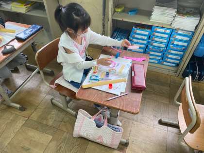 算数の学習では、長さを正しくはかる学習を進めています。今日は、折り紙を使って和かざりを作りました。教室に飾りますと伝えると、給食を食べ終わってからもたくさんの子が作っていました。教室が自分たちで作ったものであふれてきています。